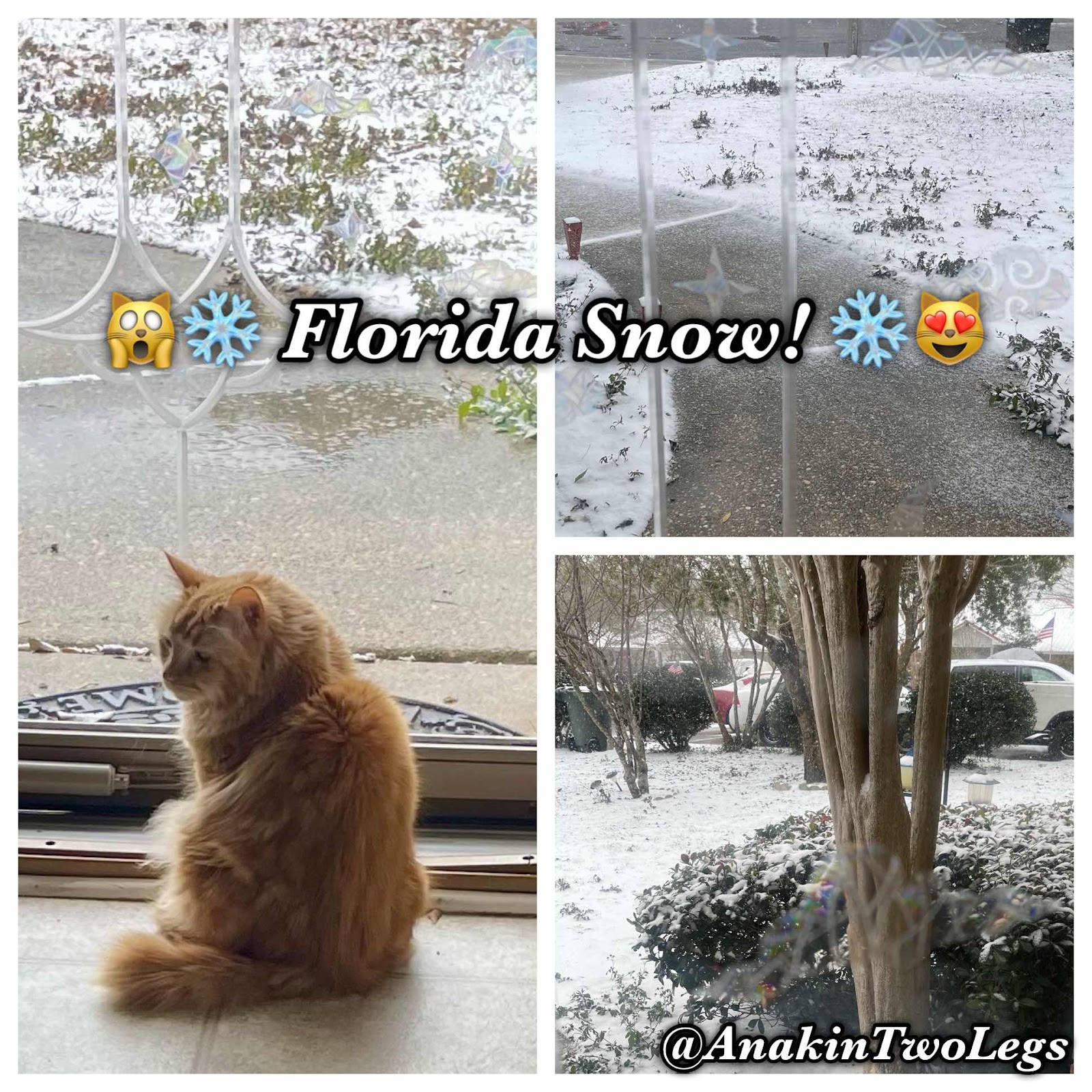 It’s really Snowing!!! ๐❄️☃️๐ป We are in Pensacola, Florida. ๐ This is the most snow I’ve ever seen in person. ๐งก Mika isn’t sure what to think about it ๐น We will try and make a snowcat later this afternoon.