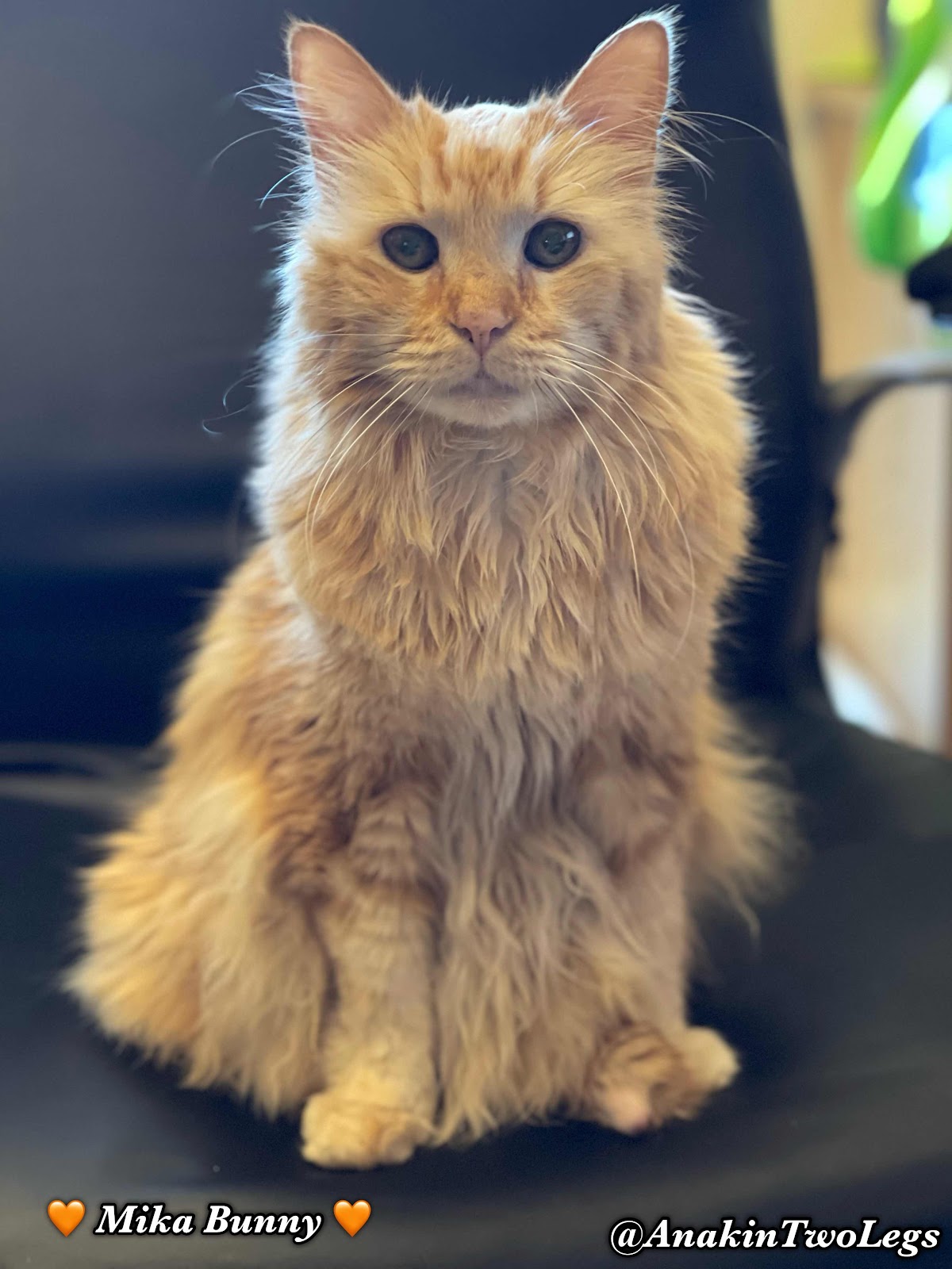 ๐งก Mika my handsome boy, is feeling much better and eating his own food again. He still having a bit of poopy issues. In the picture above that was after his fourth bum bath since last Wednesday. We also took the clippers and scissors and gave him a sanitary cut. We trim down his pantaloons pretty short and the underside of his tail. Right now he is just taking probiotics and his prednislone.