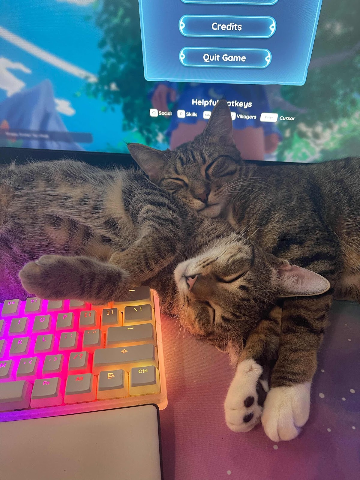 Miko & Milo are getting so big! They are about 10 months old now. Here they are napping by my daughter’s computer while she plays games. 😻❤️